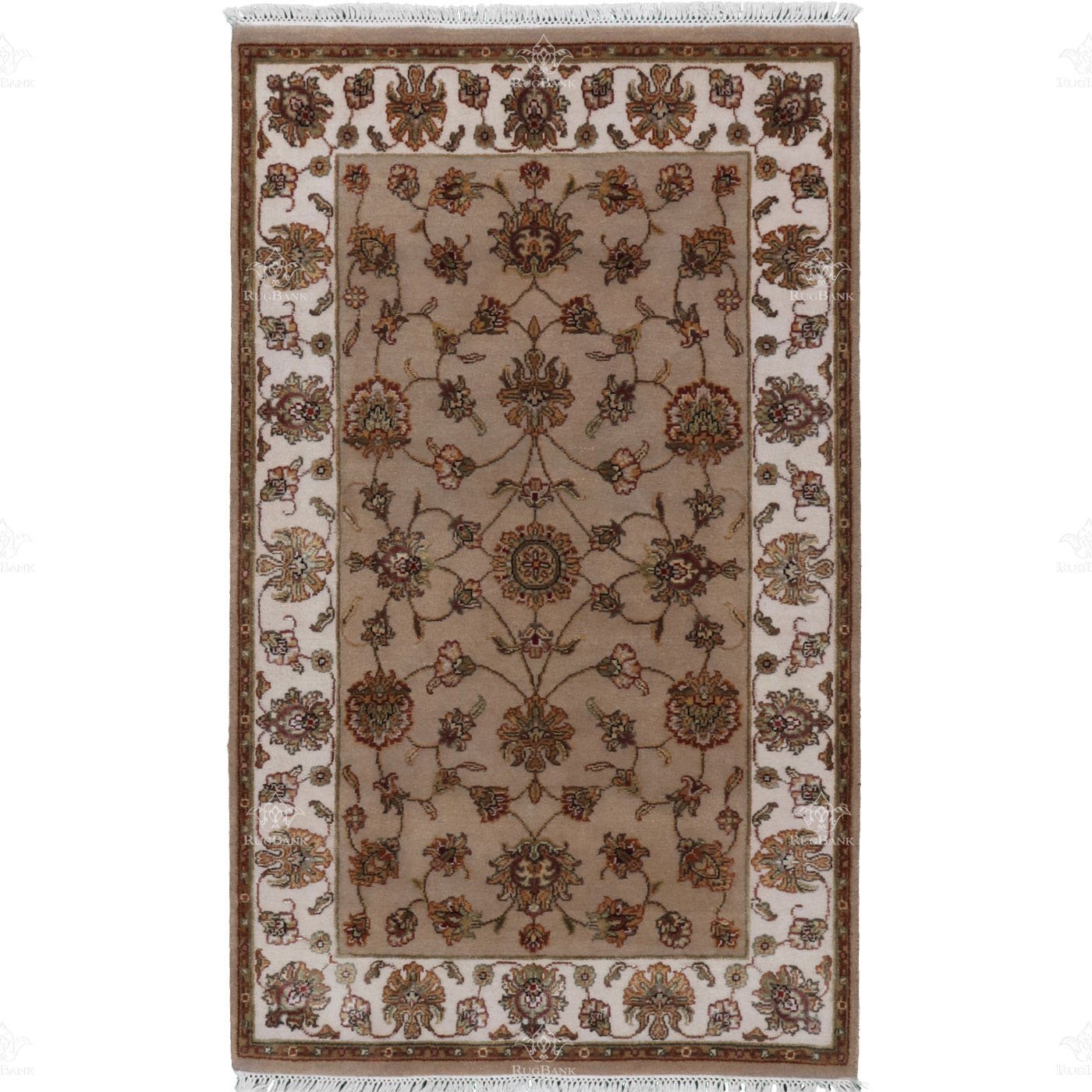 – Ivory Center and White Borders: The rug boasts an ivory background in the center, creating a serene focal point, while the white borders add a touch of purity and elegance.