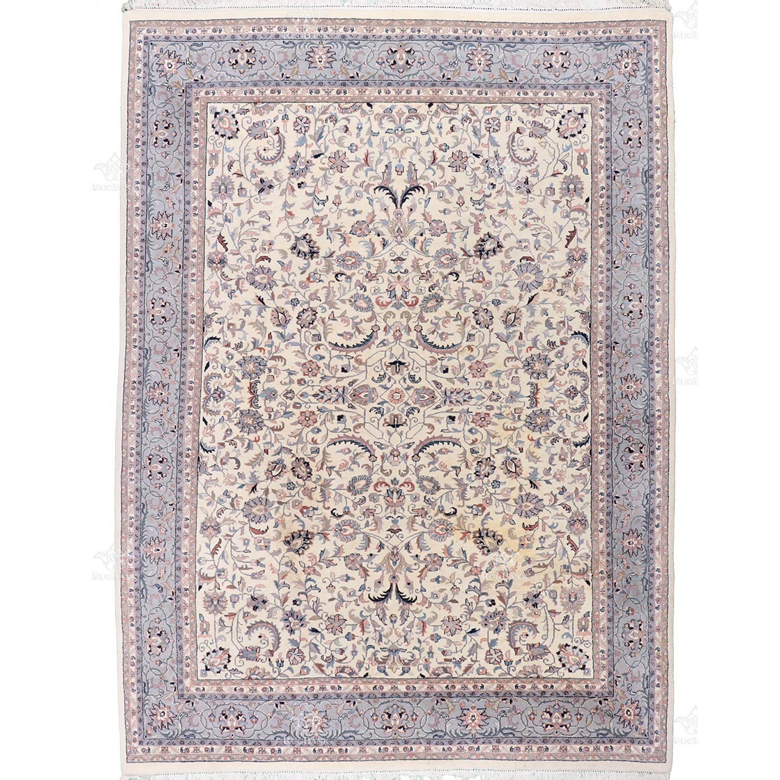 The Soft Tick Pile European Design India Rug is a true masterpiece that combines the sophistication of European design with the rich heritage of Indian craftsmanship. The ivory background in the middle of the rug is the perfect canvas for the beautiful motifs that adorn its surface. The gray borders add a touch of modernity to the traditional design, creating a harmonious blend of old-world charm and contemporary style.