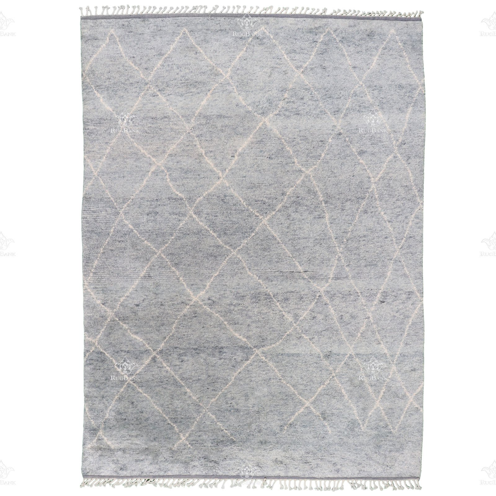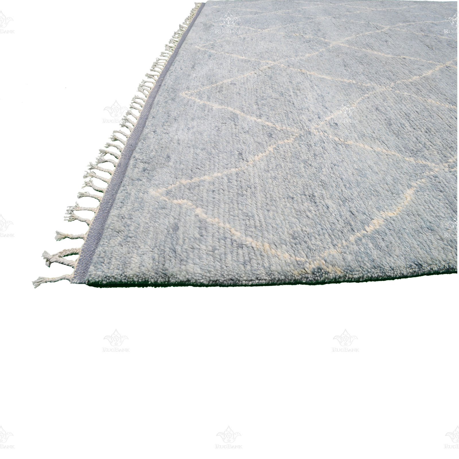 India Morocco is beautiful modern rug boasts a minimalist design with a calming gray color palette. Its high pile and shaggy feel make it incredibly comfortable to walk or sit on, while its braided fringe adds a touch of texture and style.