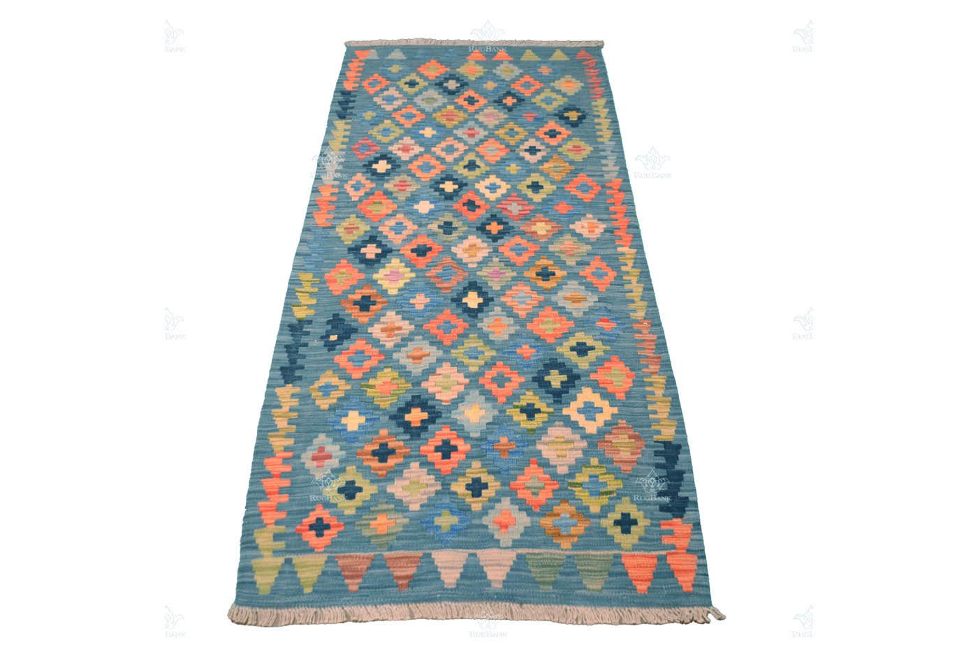 This Kilim boasts a traditional geometric design that adds a touch of cultural heritage to your decor. The colors and patterns come together in perfect harmony, creating a captivating visual spectacle.