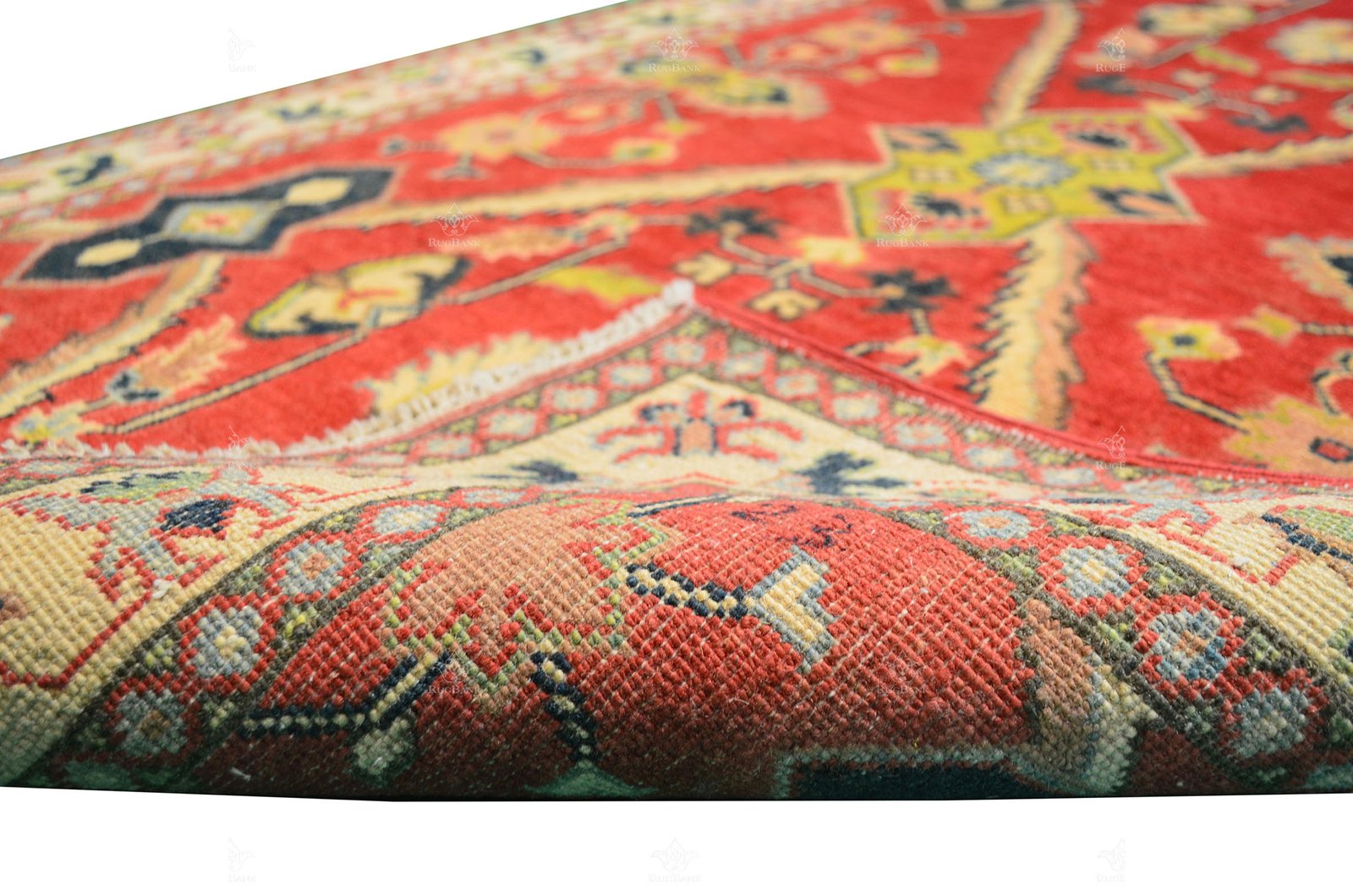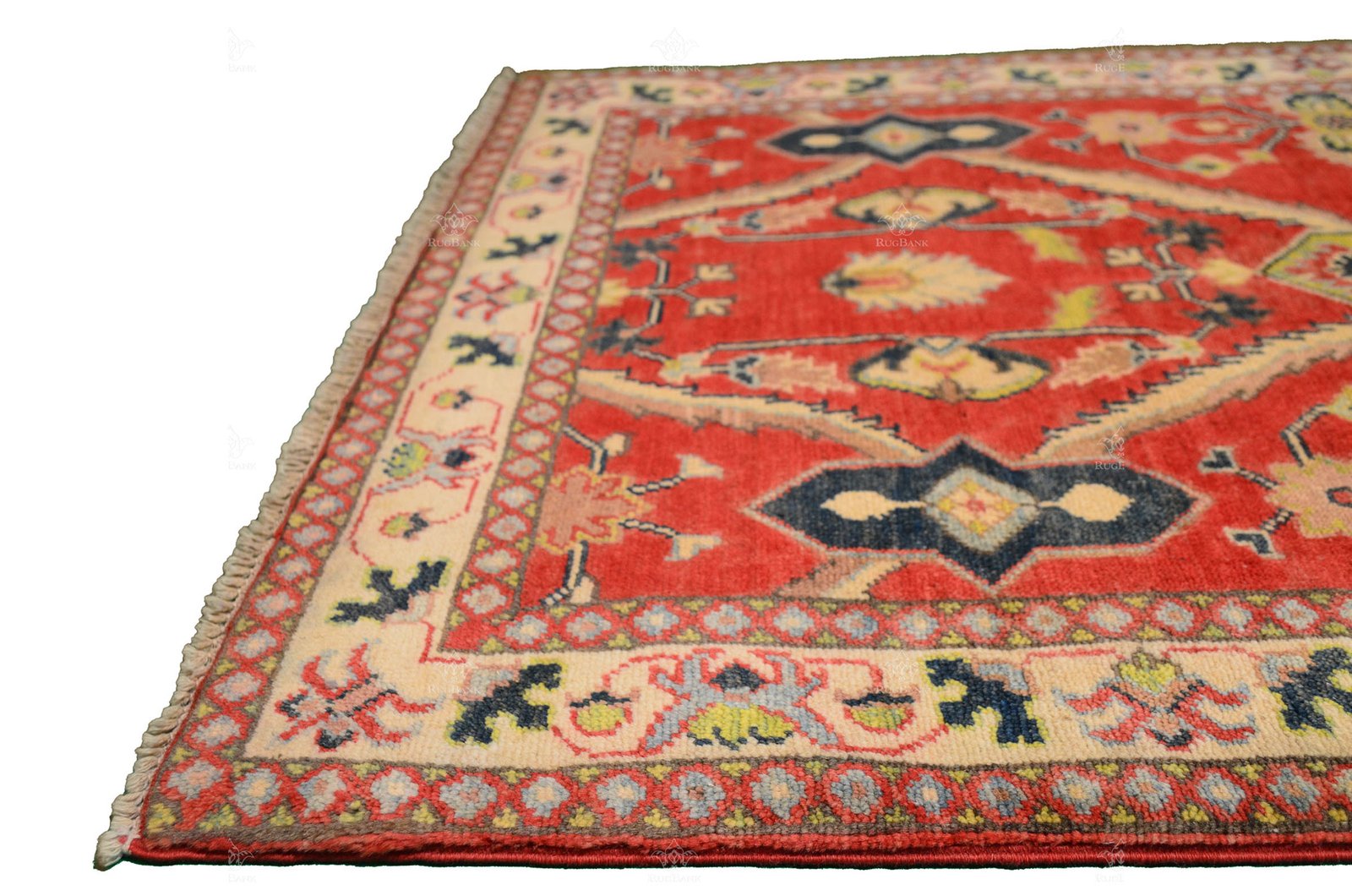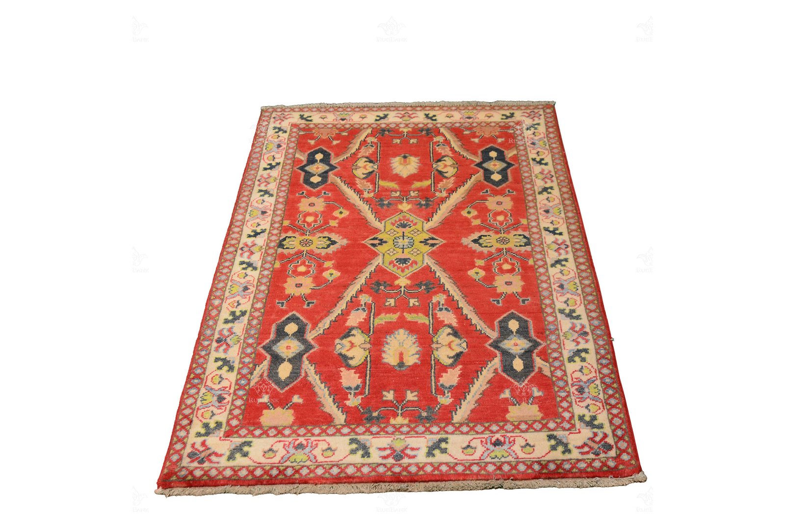 Border: White border frames the rug, adding a touch of sophistication and highlighting its intricate details.