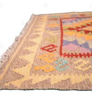Elevate your living space with our exquisite handmade kilim, a fusion of timeless beauty and contemporary allure. This kilim boasts a distinctive blend of traditional and modern elements, making it a versatile addition to your home decor.