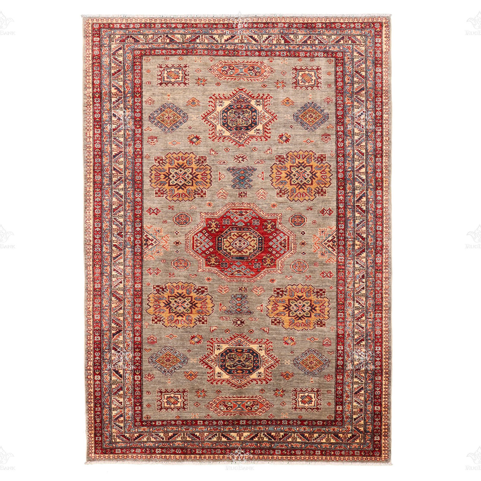 Introducing the Pakistan Super Kazak in a size of 5.5×8, a captivating blend of traditional geometry and modern design. This rug reinterprets the classic Kazak style, infusing it with a contemporary twist for a visually striking piece.