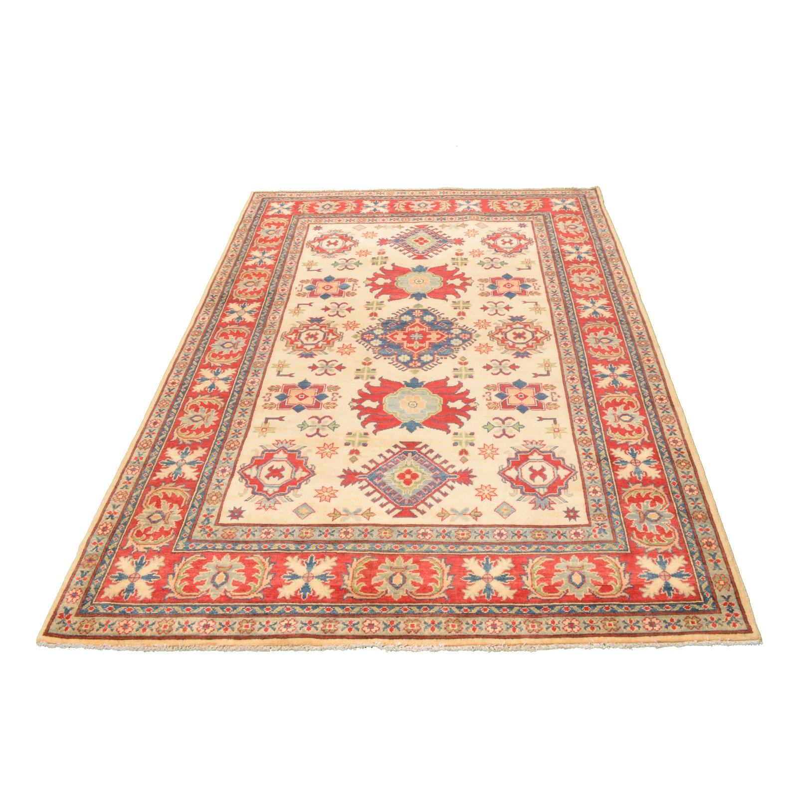 Discover the exquisite craftsmanship and timeless beauty of our Geometric Oriental Rug, featuring striking red and ivory hues. This meticulously crafted piece is perfect for elevating the aesthetics of your living space. Whether you’re in search of a statement piece for your home or a unique gift, our Geometric Handmade Rug is the ideal choice.