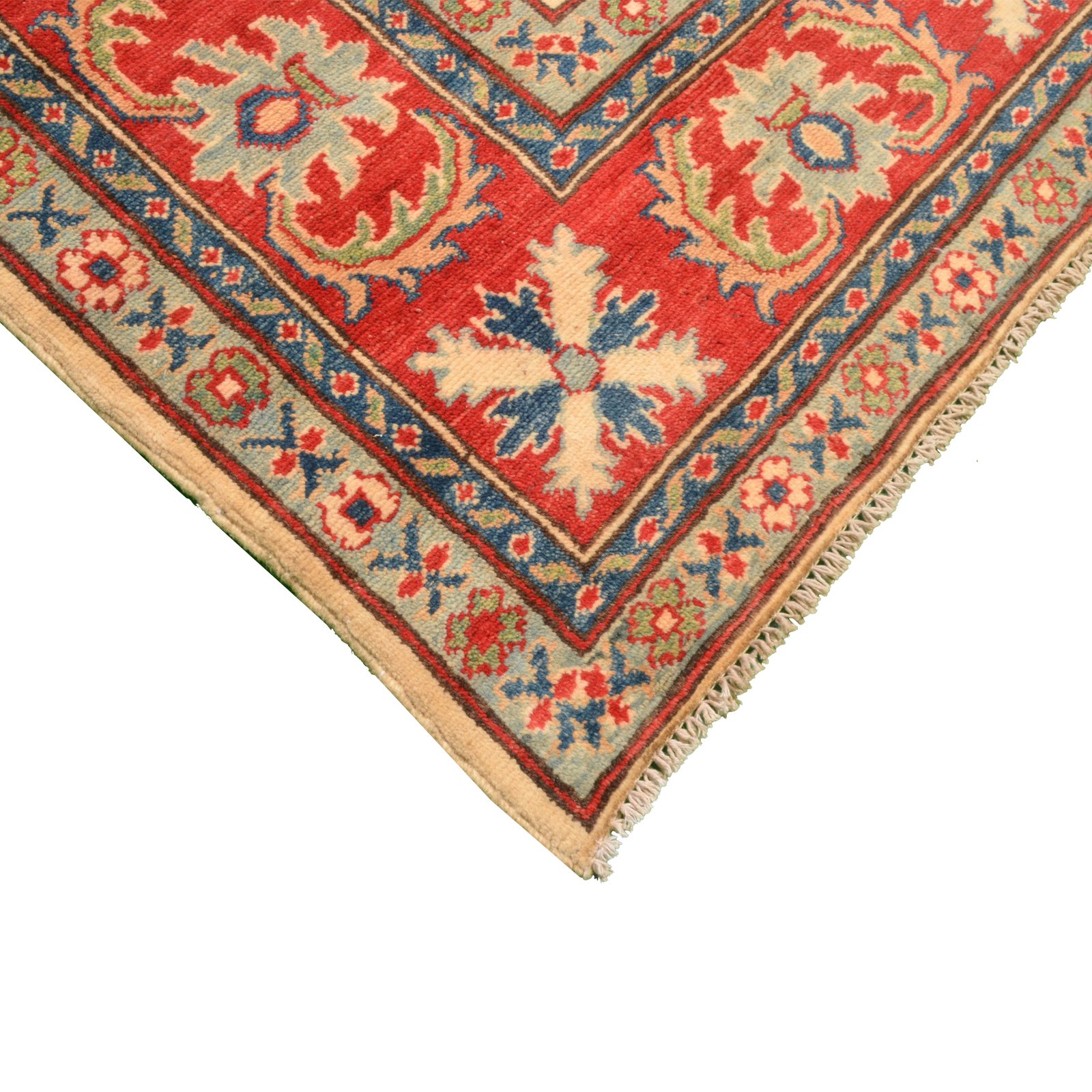 Geometric design. Gives a fun pop of color to any room. A very affordable rug for a durable hand knotted rug.